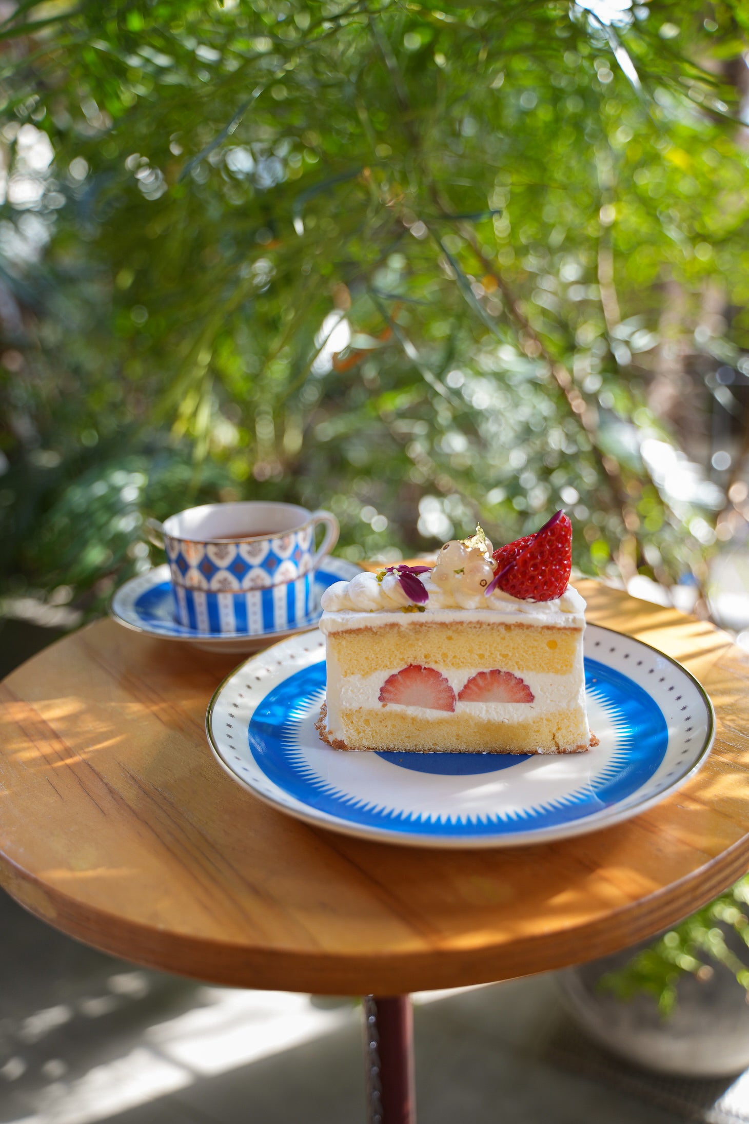 食後のティータイムには、Pasand Homeの「The Blue Collection」が再び登場。デザートプレートは、ケーキを乗せるのにもぴったりなサイズ感です。ほんのりスパイシーなPasand Teaはスイーツとも相性抜群。