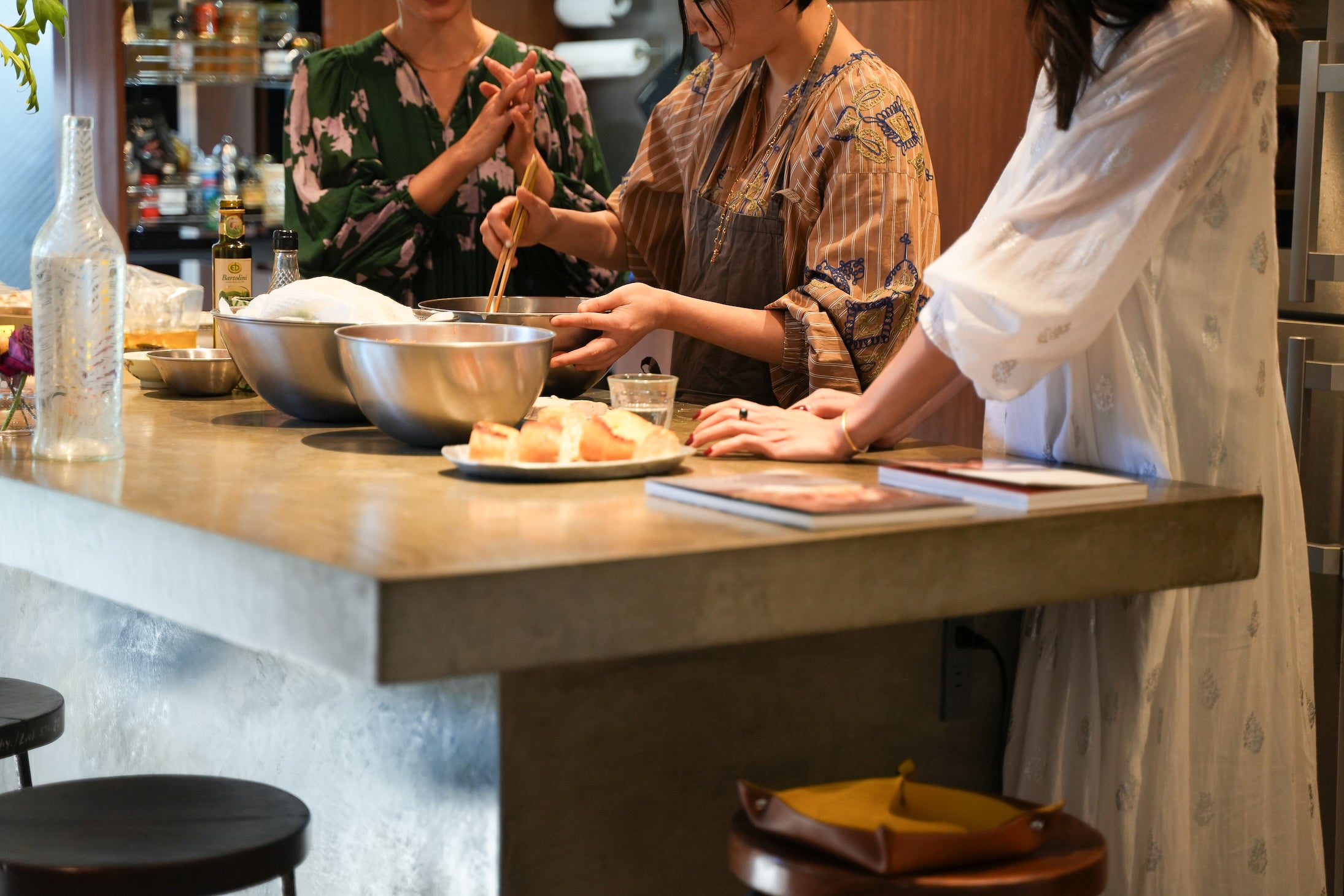 東京・大阪を行き来しながらファッション業界で活躍する金セアルさんと、「SPICEUP」という料理教室を運営する料理家の桑原亮子さんを招いて、PasandディレクターのMamiが自邸でホームパーティーを主催。