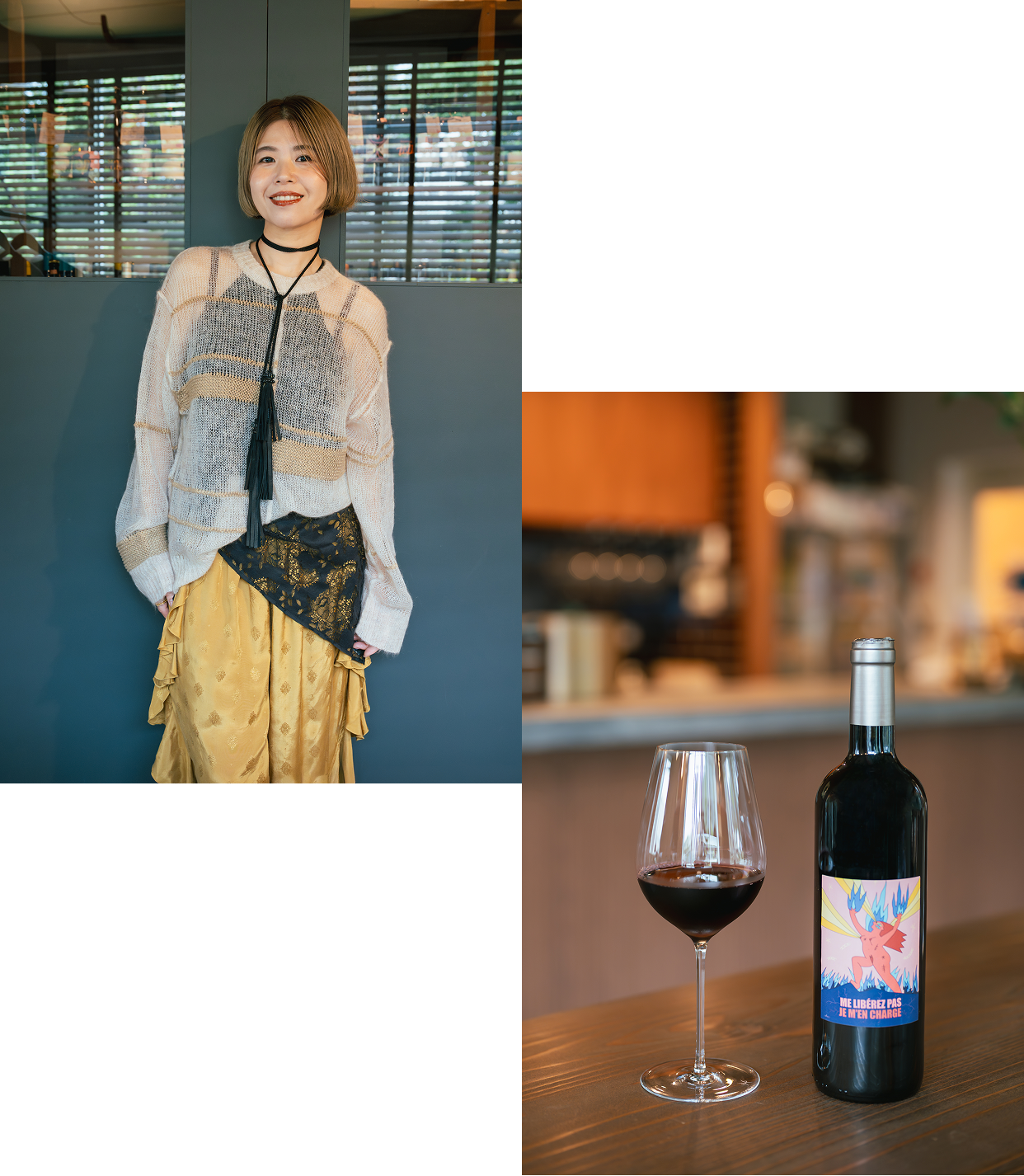 今回撮影させていただいたのは、Kanaさんも普段から通う富ヶ谷のワインショップ[WINE&SUNS]。ナチュラルワインをメインに、クラフトビールや食品、調味料、オリジナルのアパレルなどを取り扱う。