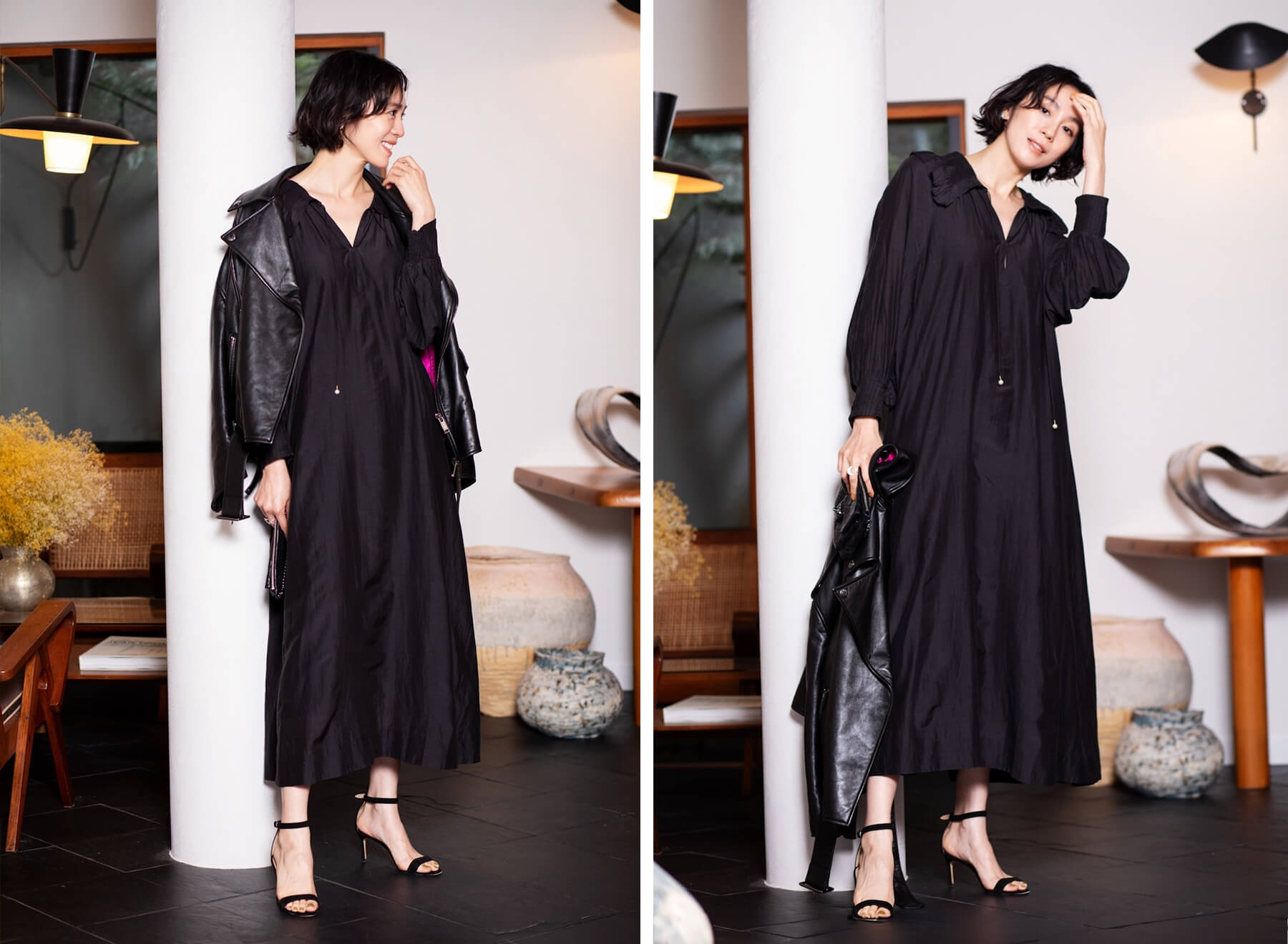 上品な光沢とドレープ感が美しい シルクコットンのドレス