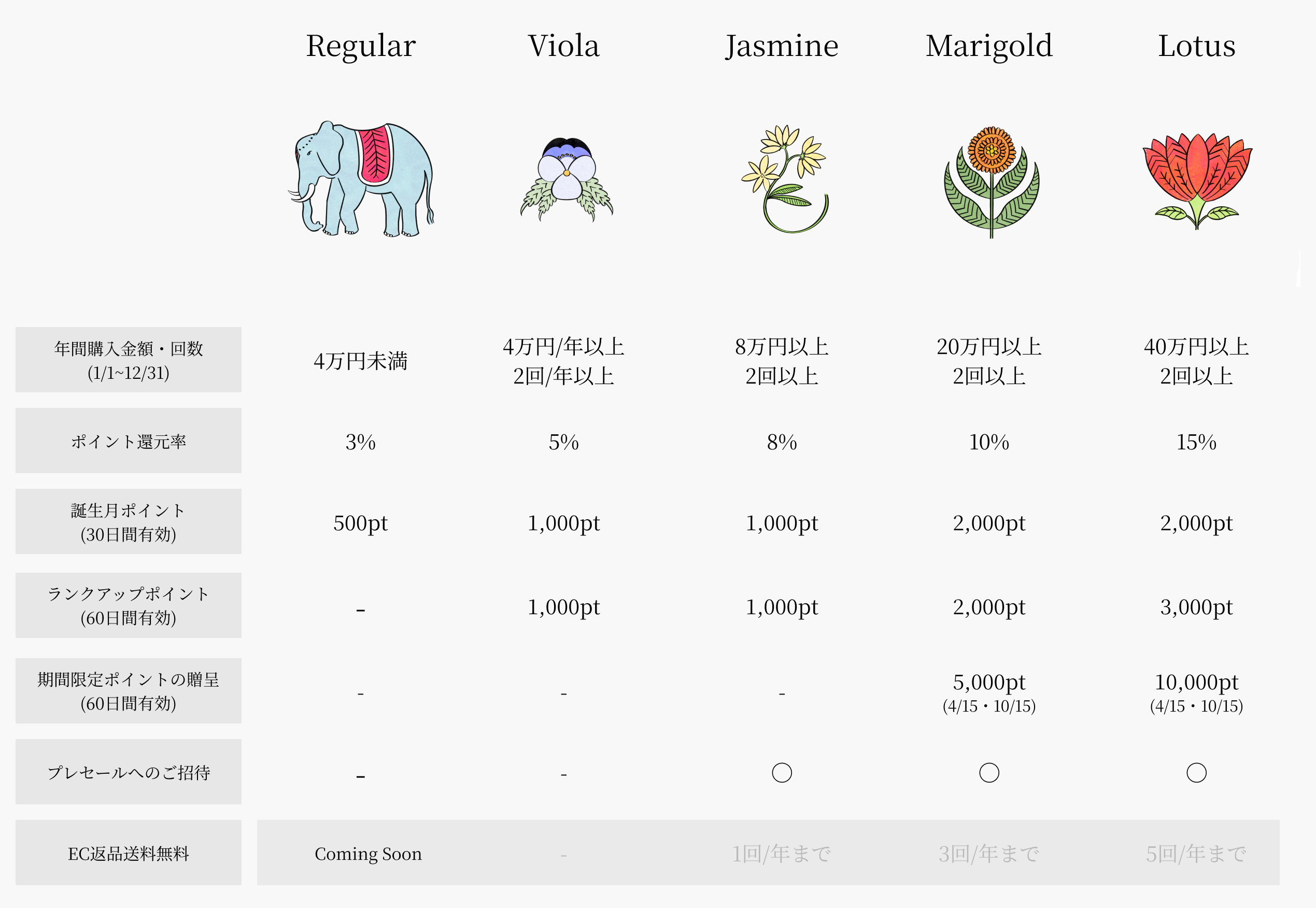 However, the purchase amount and number of purchases will be reset, so if you do not meet the conditions for the Jasmine stage in 2024, you will be downgraded to Regular rank in 2025.