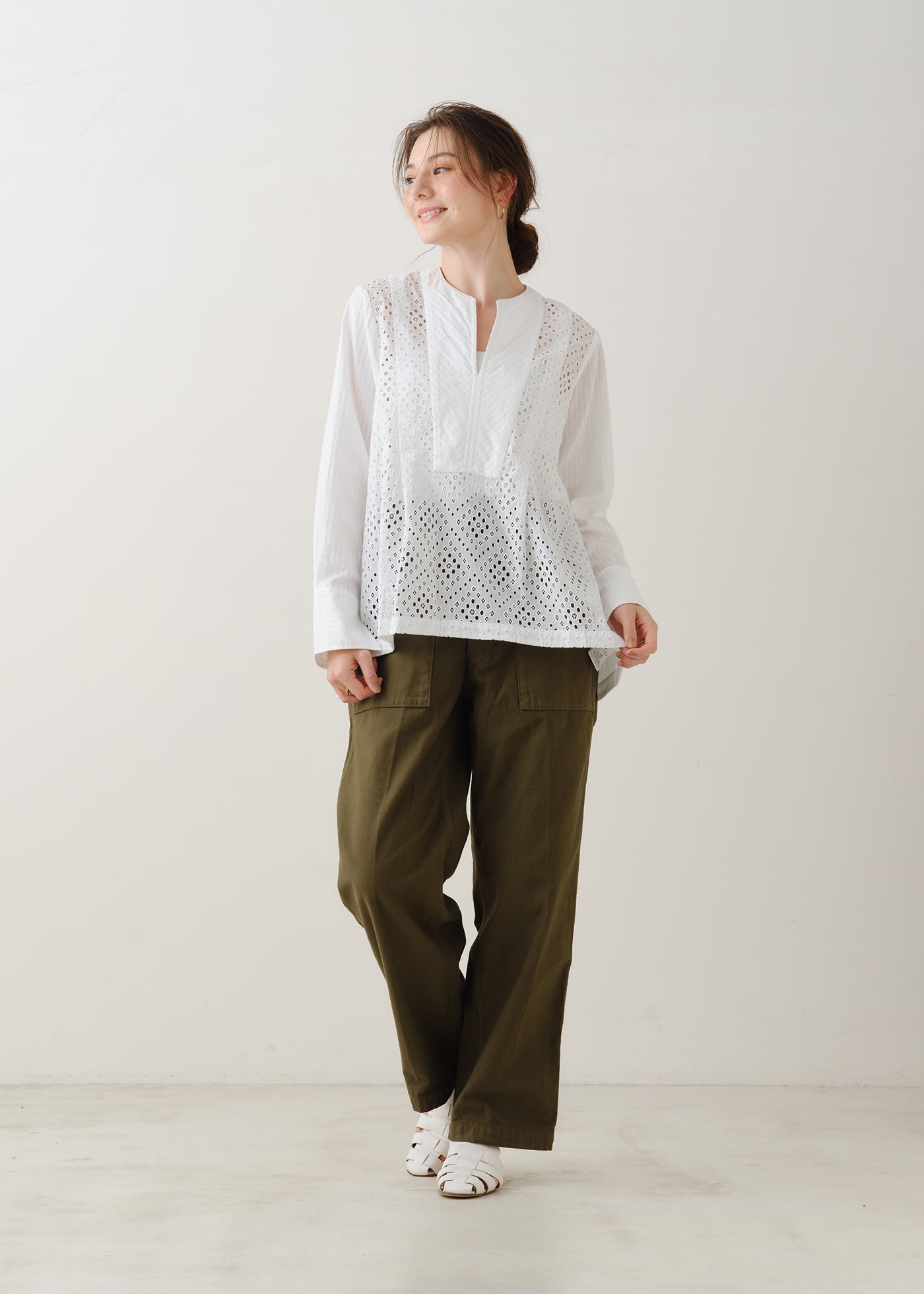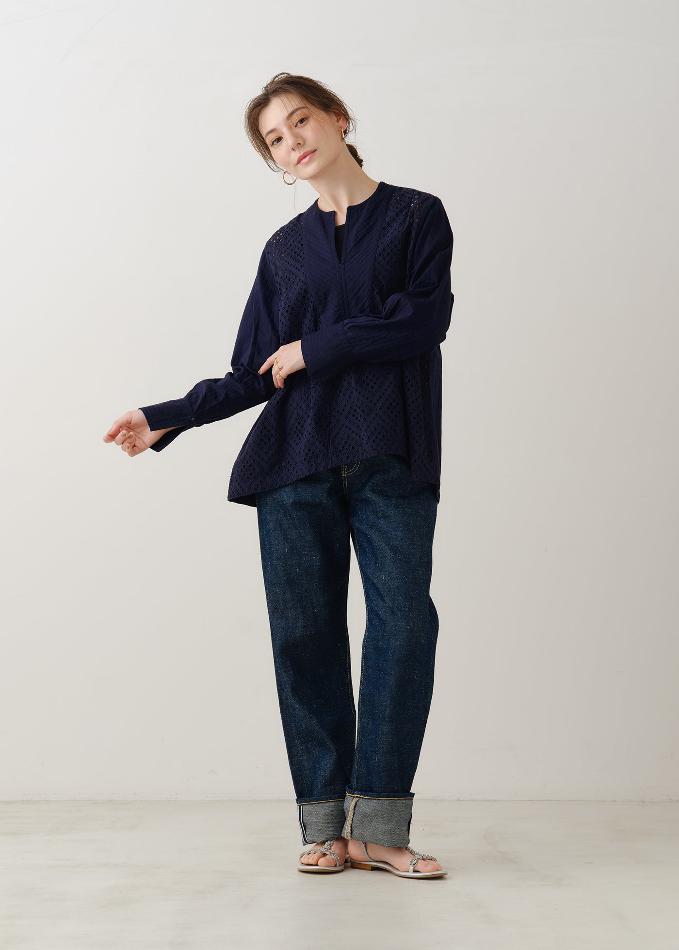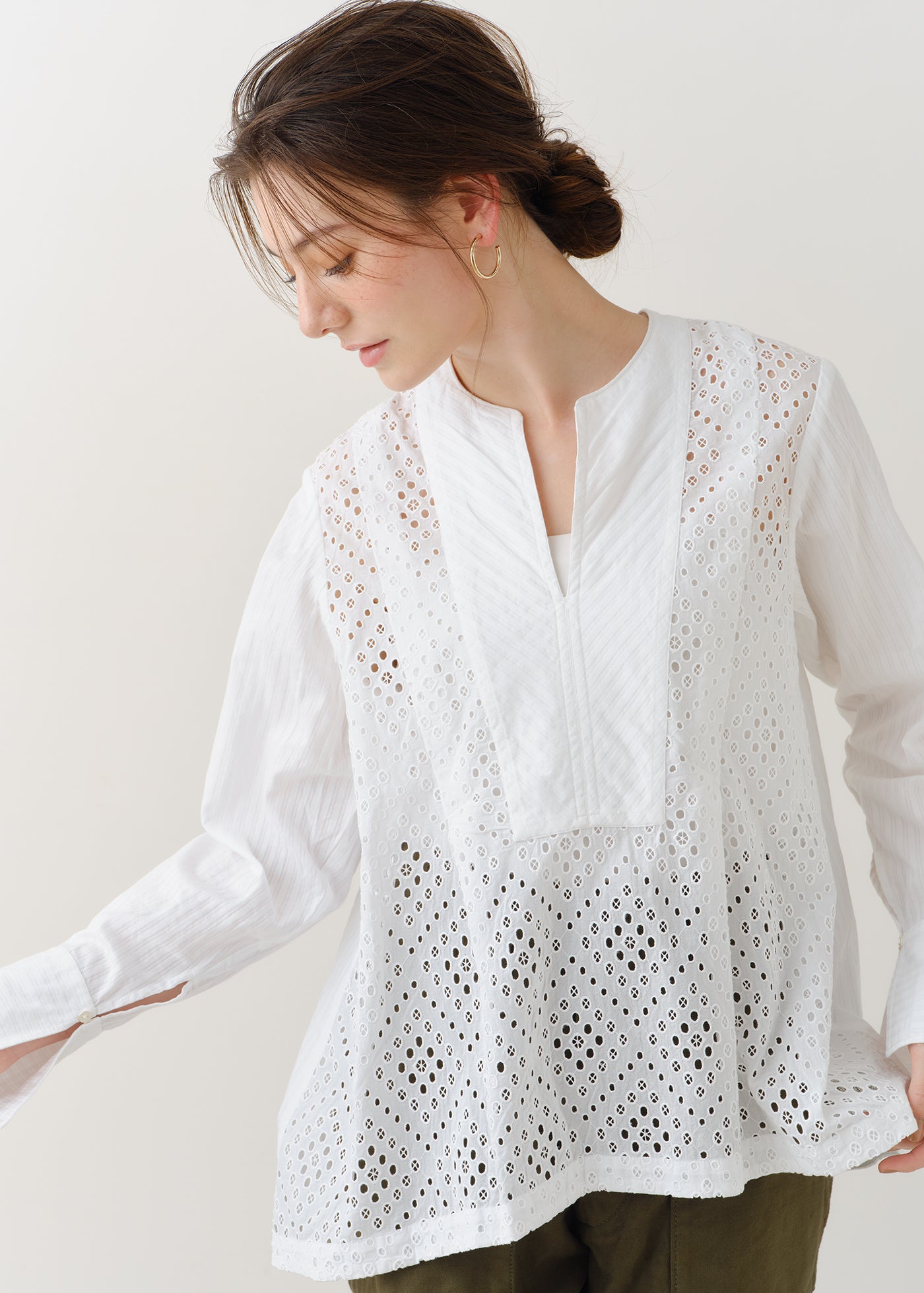 The embroidery is see-through at the back, so you can enjoy it either by contrasting the color with the innerwear you wear underneath, or by blending it in.