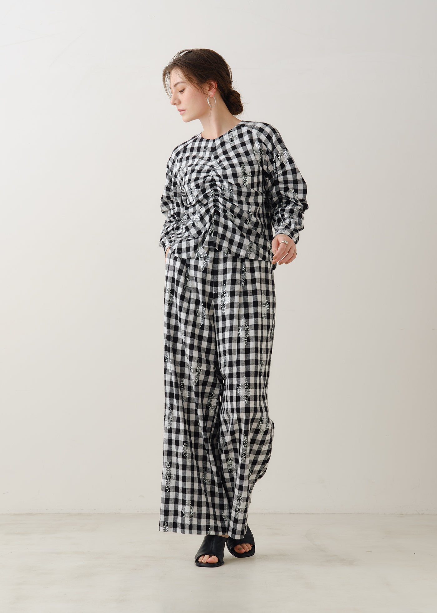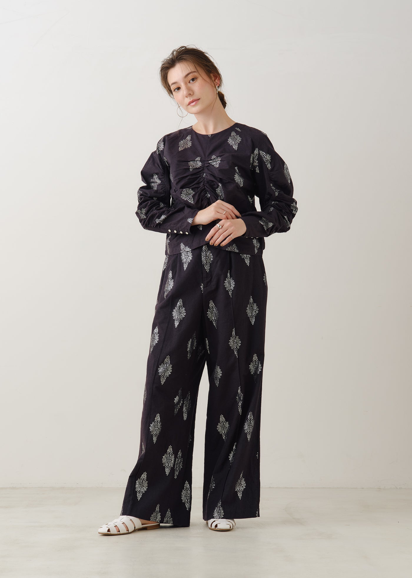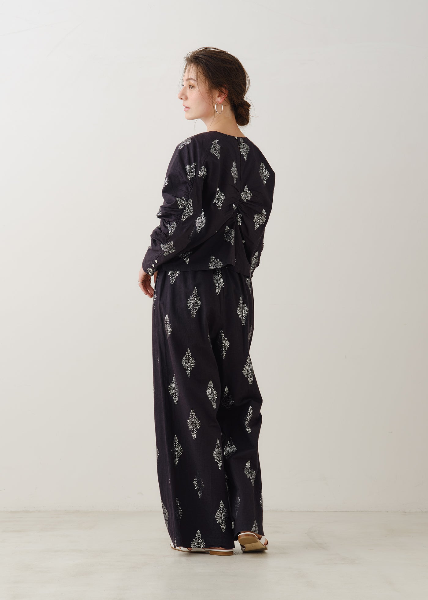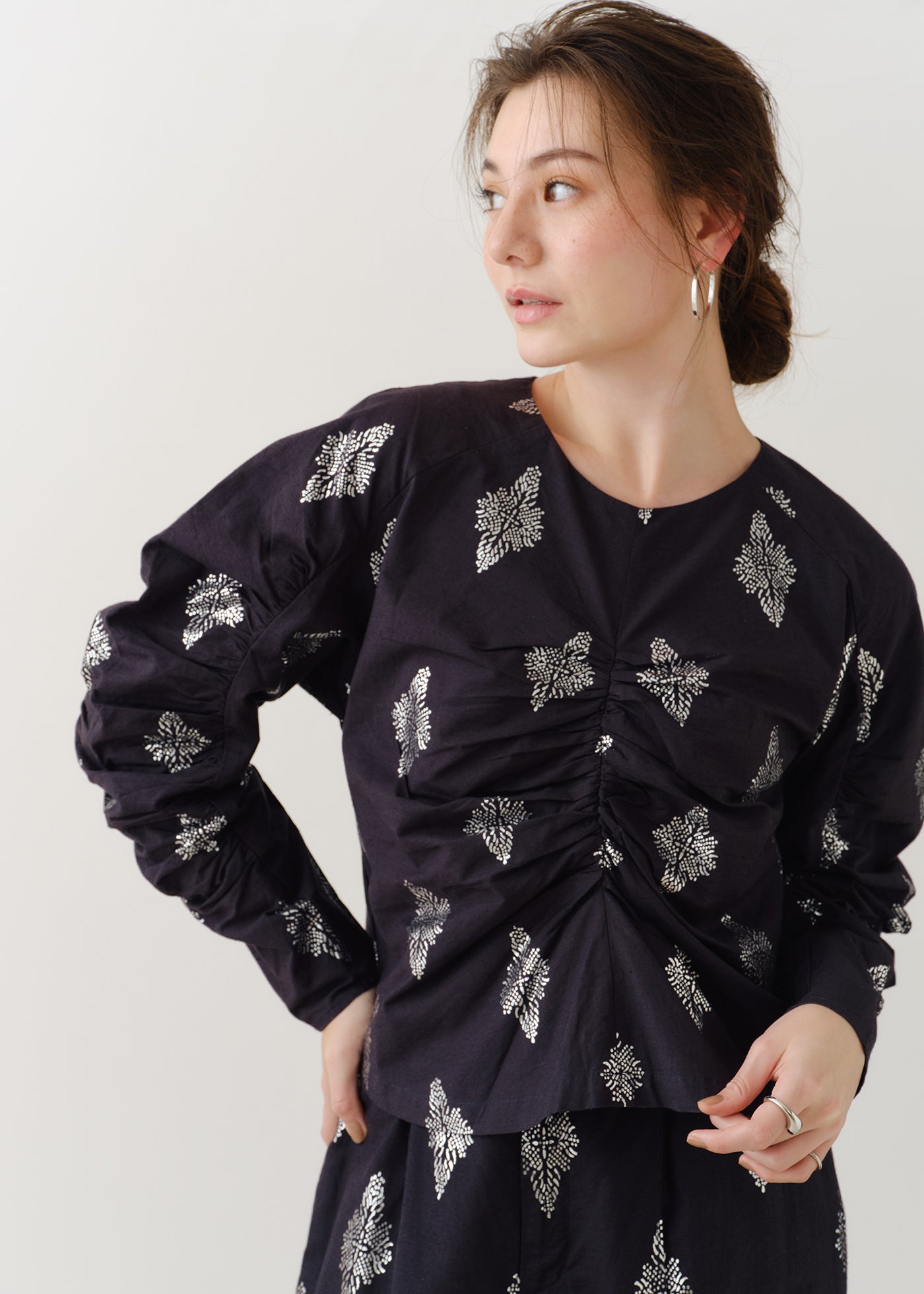 The foil-printed cotton linen gives a quiet yet glamorous impression.