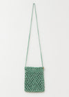 This sacoche is hand-woven in macramé using two-tone cord. It is small enough to hold just a cell phone and a small wallet, so you can enjoy coordinating it in a way that suits you. It is recommended for situations where you want to go out hands-free and light, or as a sub-bag to carry as an accessory.