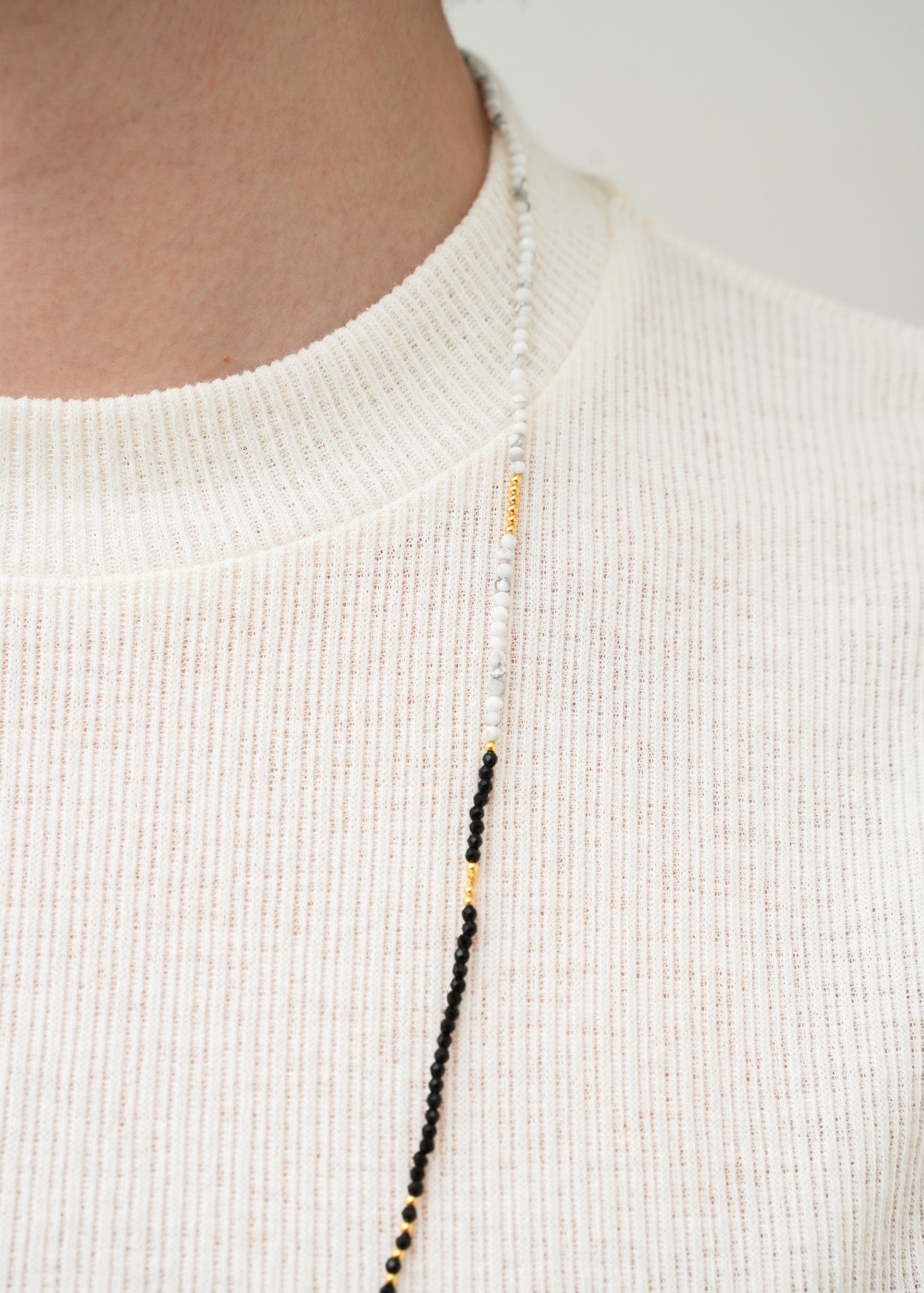 4種類の天然石と、SVのゴールドカラーパーツが繊細に織りなすロングネックレス。