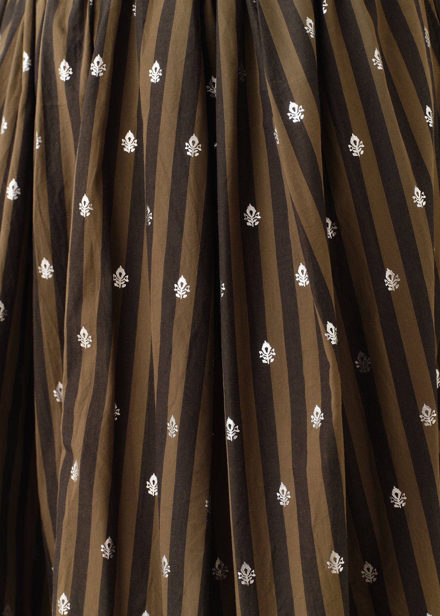 ストライプに箔プリントが重なり奥行きのあるテキスタイルに。