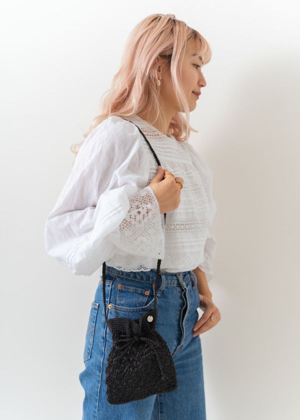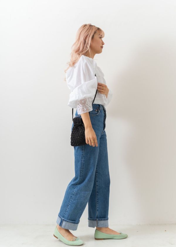 カフスにレースをあしらった袖口はゴム入りなので、ブラウジングするとフェミニンな魅力がさらに引き立ちます。
