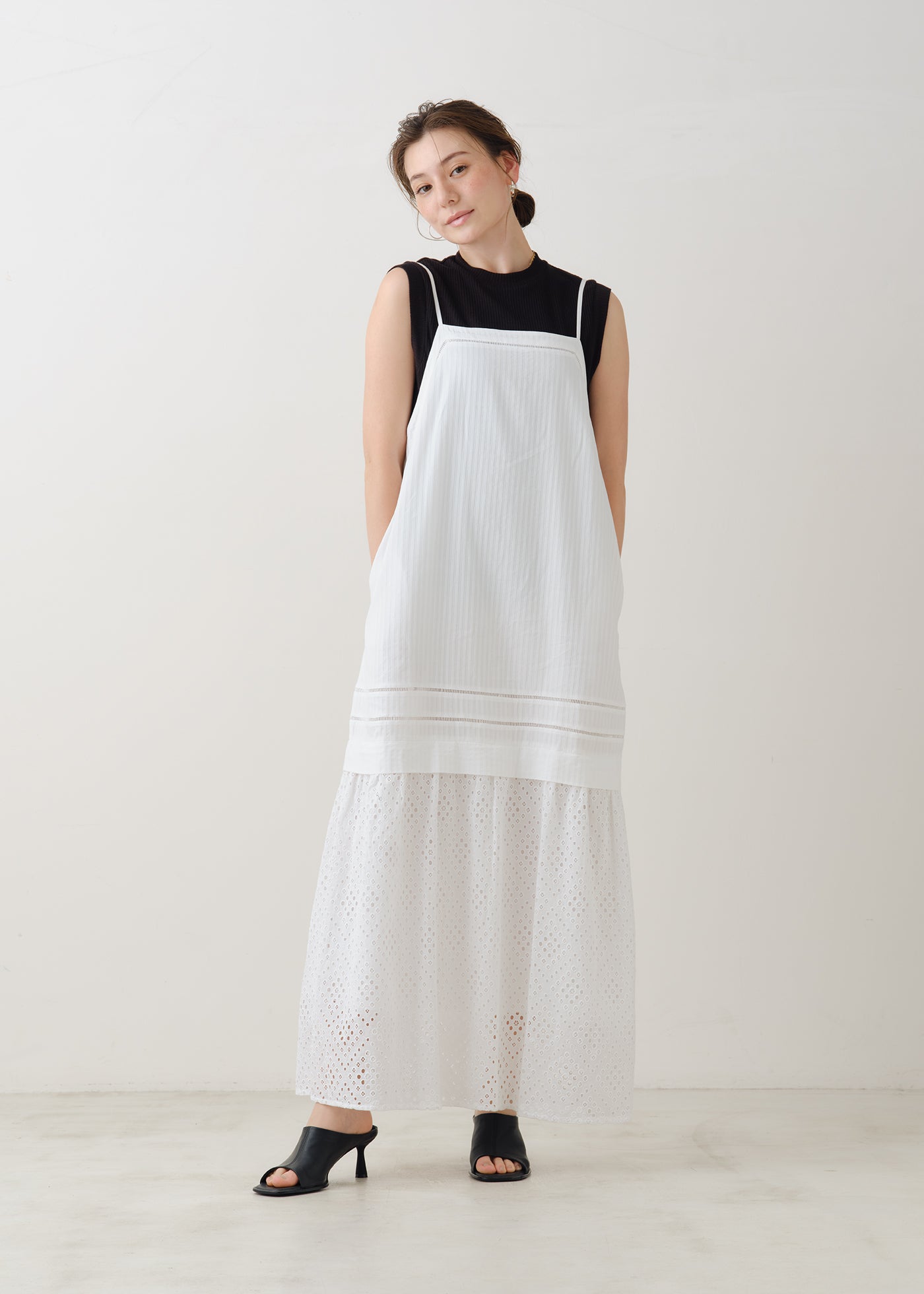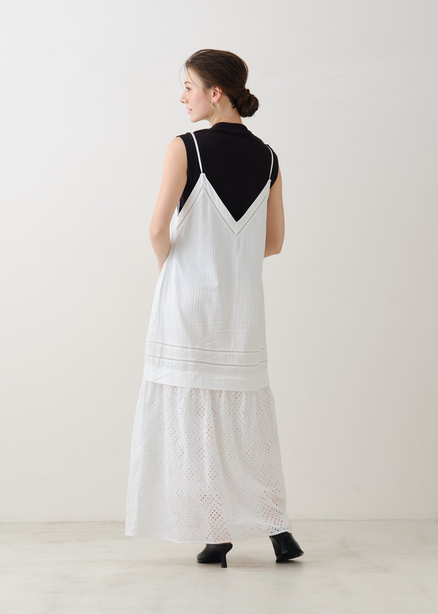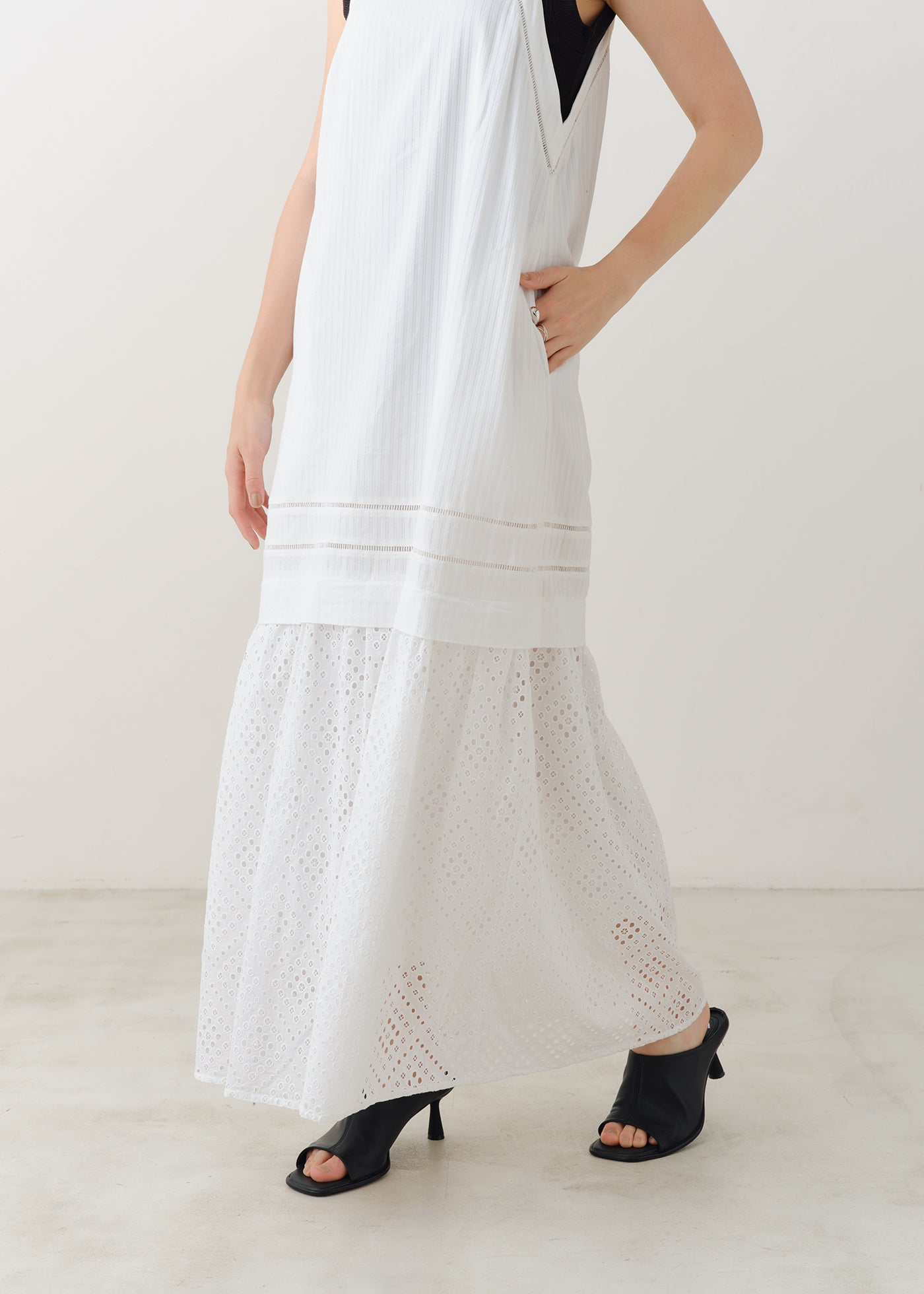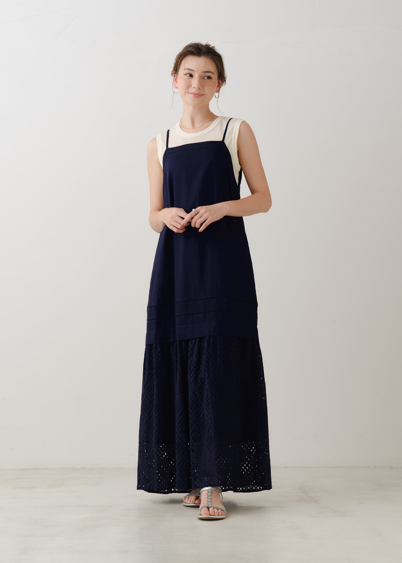 雪や星空のようなカットワークの透け感を楽しむキャミソールドレス。
