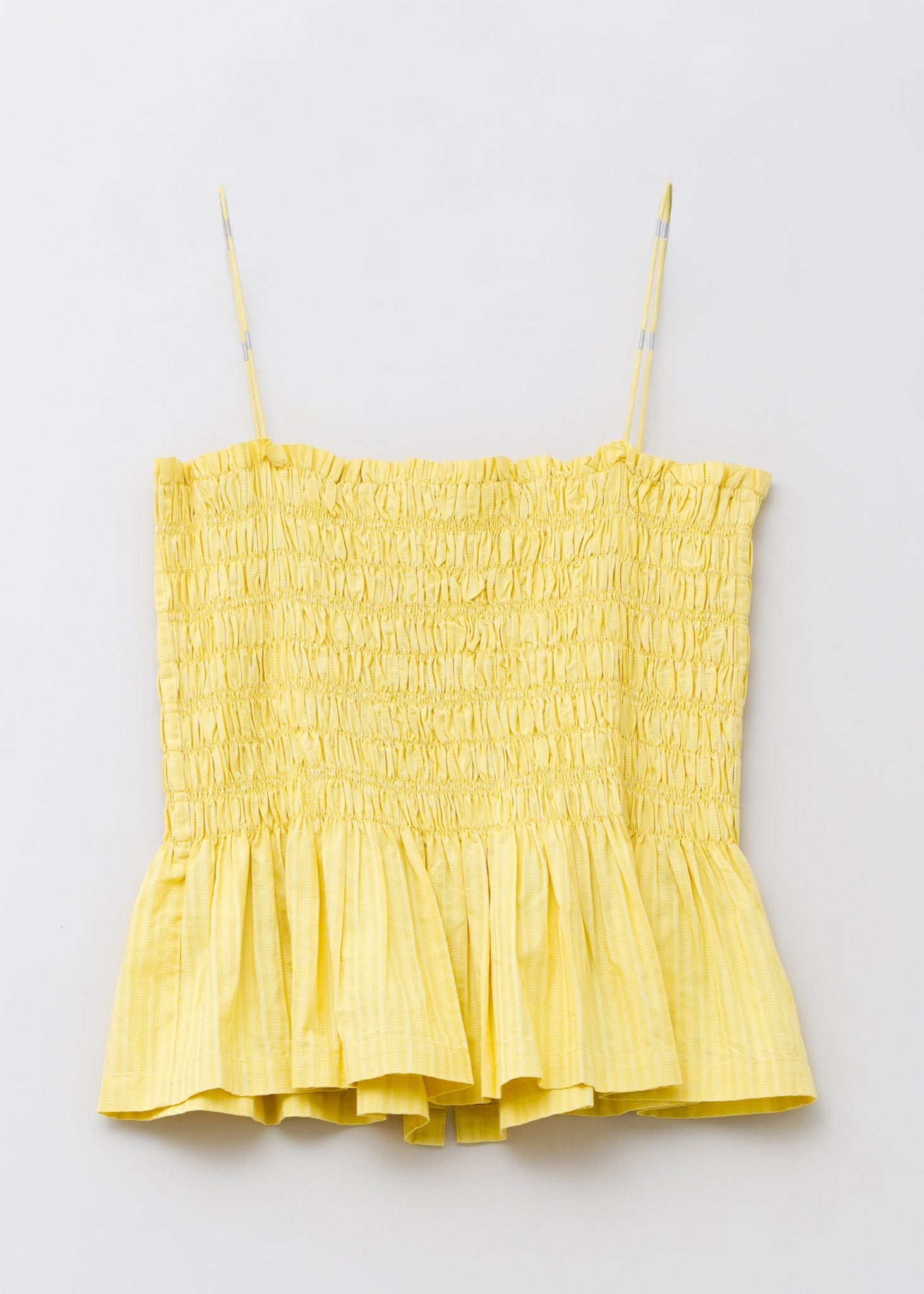 一つずつ手作業でシャーリングを施したキャミソールトップス。