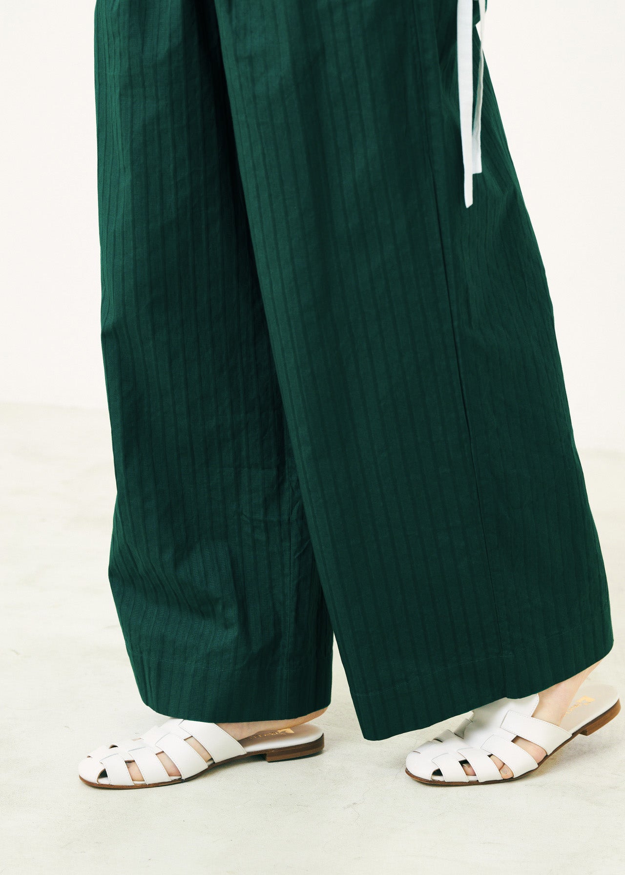 肌に張り付きにくく、リラクシーな着心地ですが、さりげなく入ったタックとハイウエストのデザインで履くだけでスタイル良く見せてくれます。