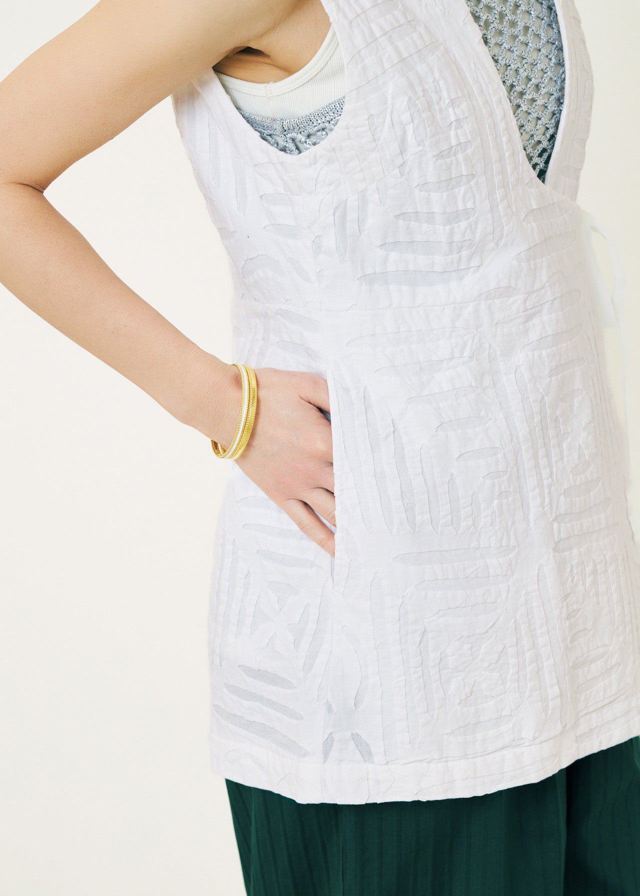 生地を二重にしてアップリケを施した表情のある生地はインドの丁寧な手仕事が光ります。