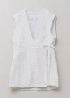 アームの開きを広くし、インナーとのレイヤードスタイルが楽しめるのもポイント。コットン特有のドライな肌あたりと軽やかさで夏の重ね着も涼やかに。