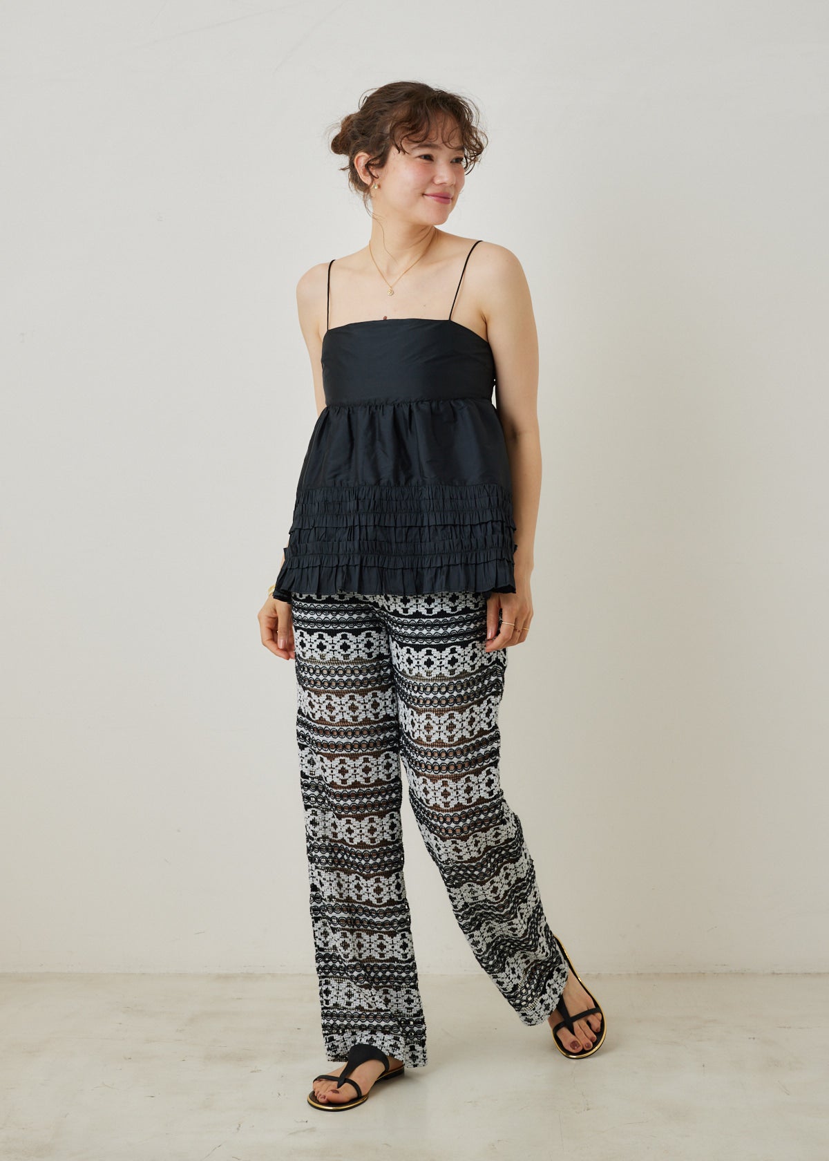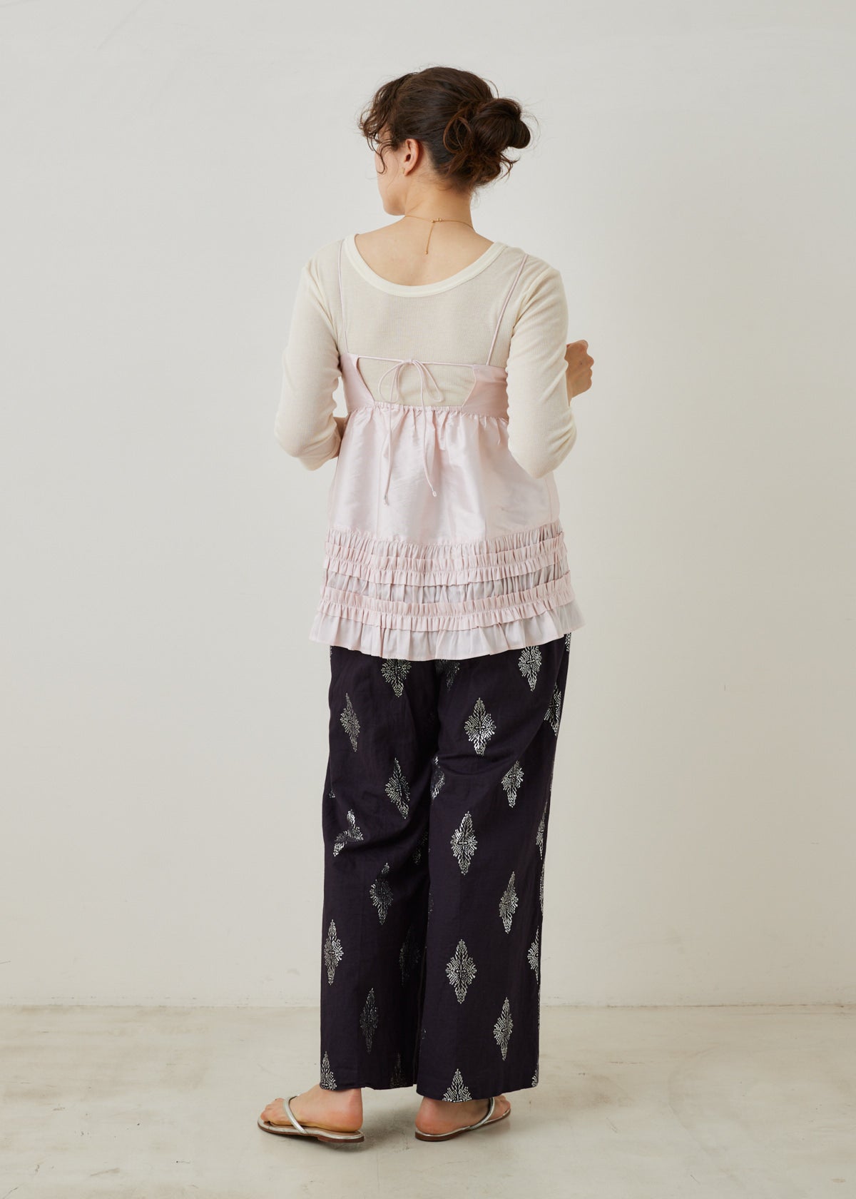 Gathering(ギャザリング)という職人の手仕事により生み出された機械のように正確なフリルは、まるで花びらのようにフェミニンに咲き誇ります。