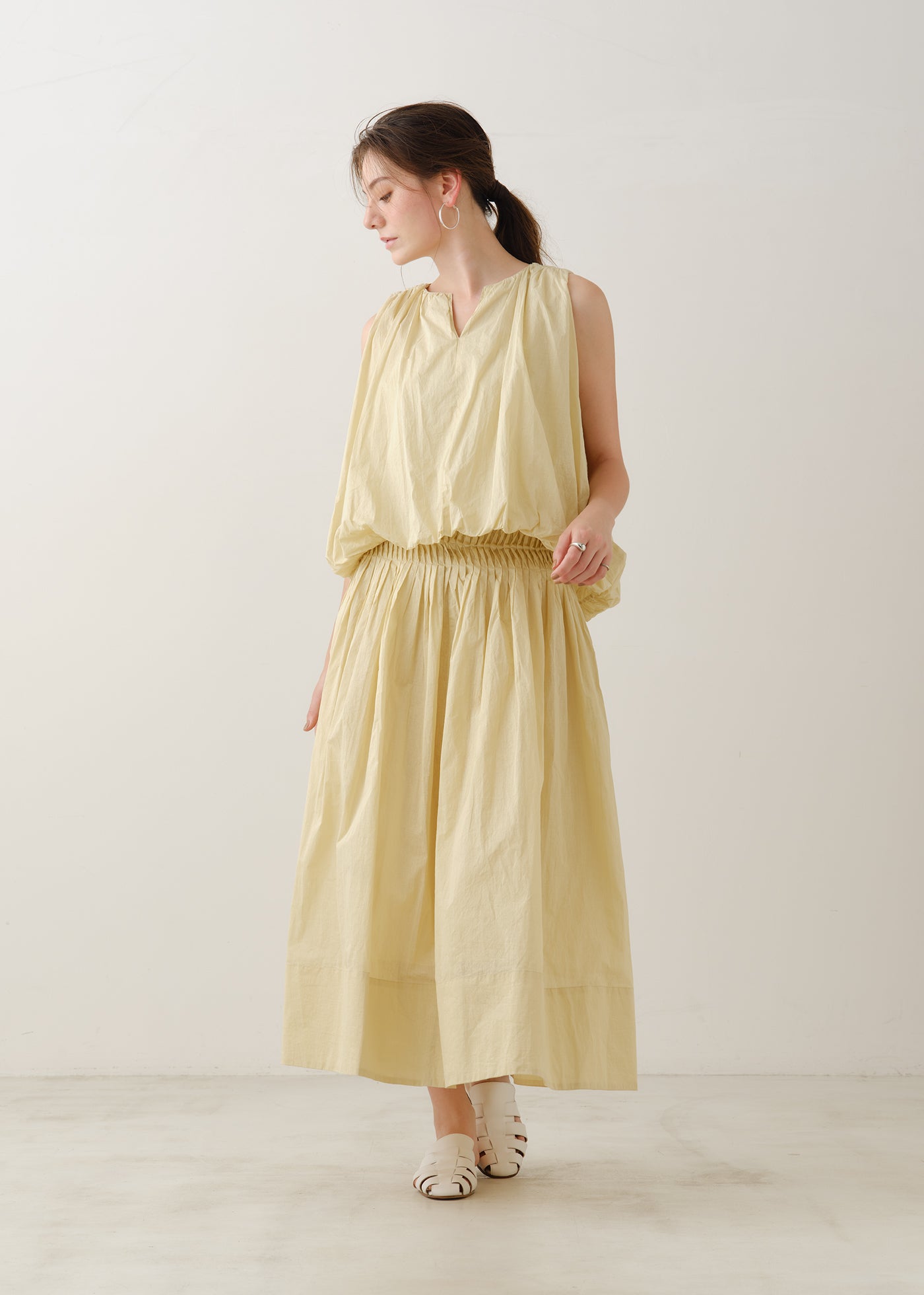 コットンオーガンジーで仕立てたタックスカート。