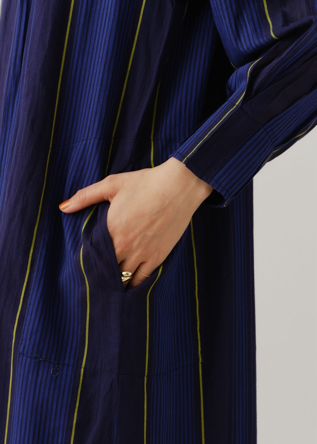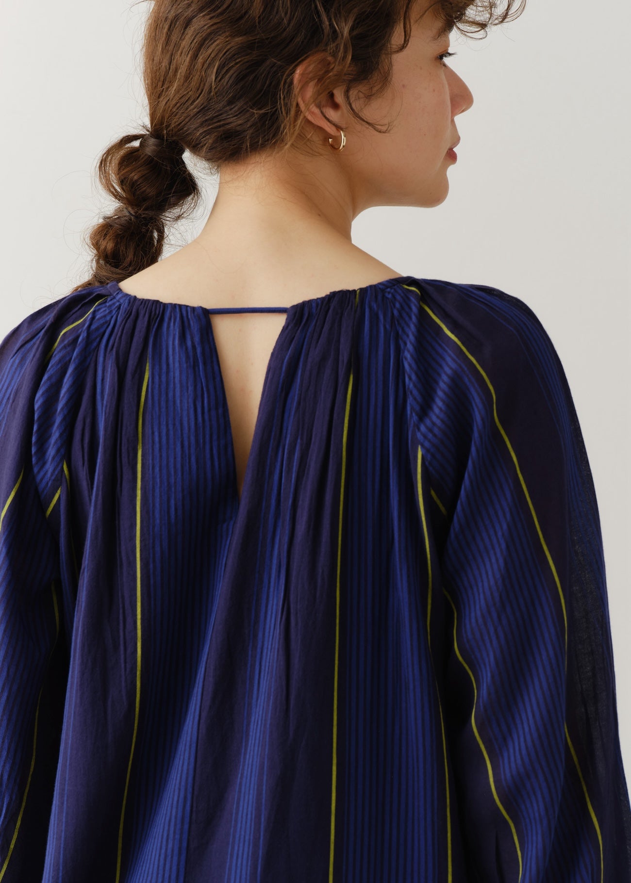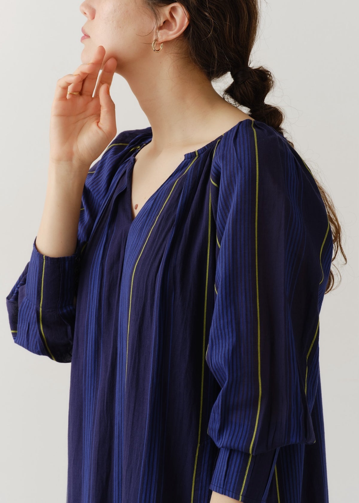 袖にやわらかく沿う袖から、透け感のあるストライプ織の美しさと心地よさが感じられるはずです。