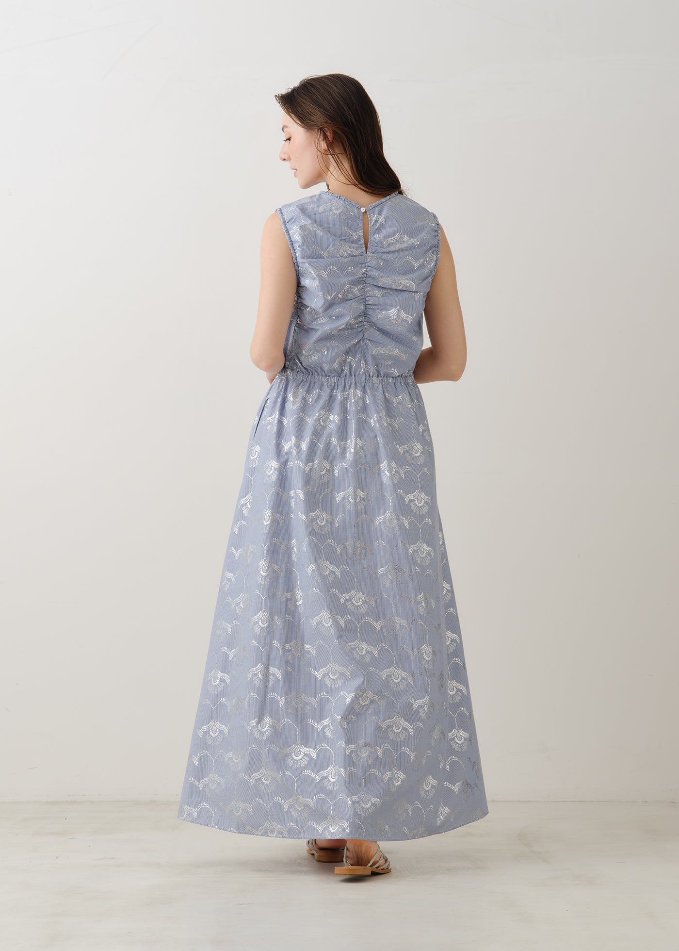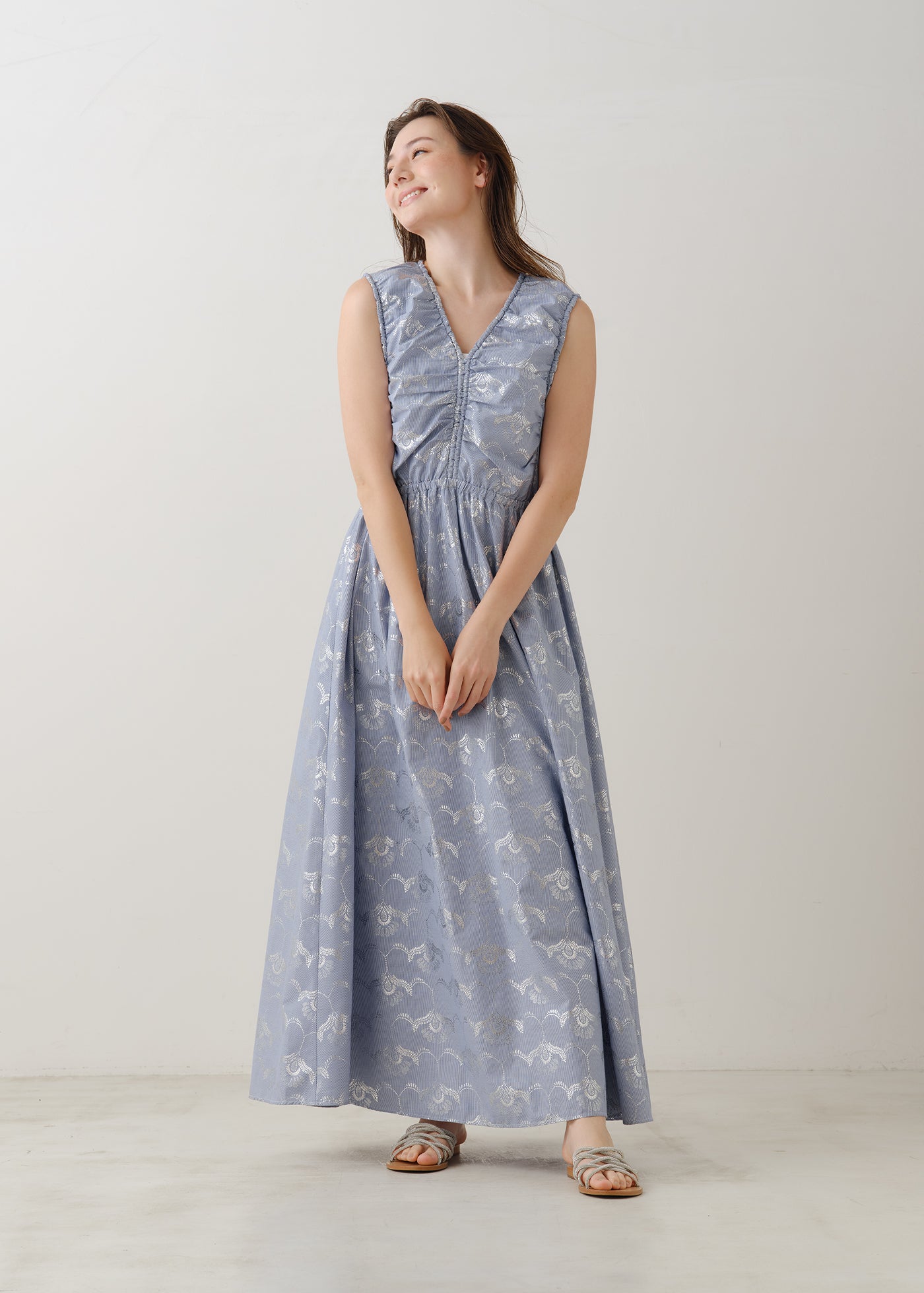 Cotton Dobby Wave Flower Foil Print Sleeveless Dress