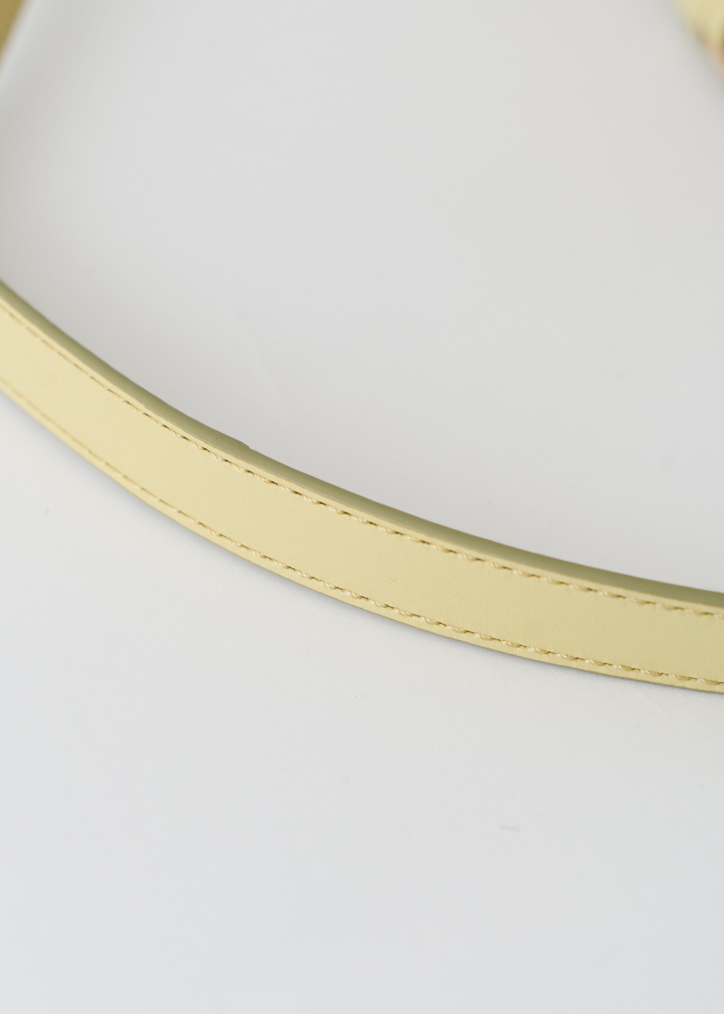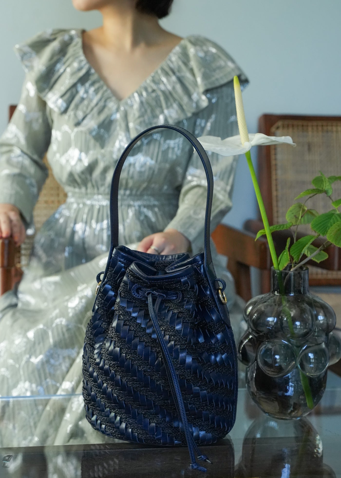 小ぶりなバケツ型で、底面は一面レザーを張り込んであり、入れたものをしっかりと支えます。