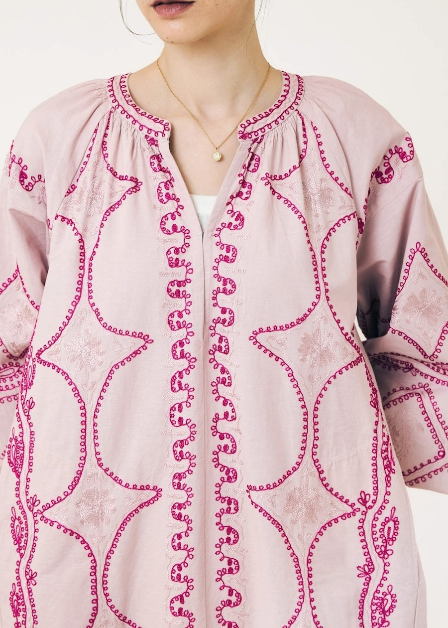柔らかな風合いのコットンリネン生地にたっぷりの刺繍を贅沢に施したワンピース。