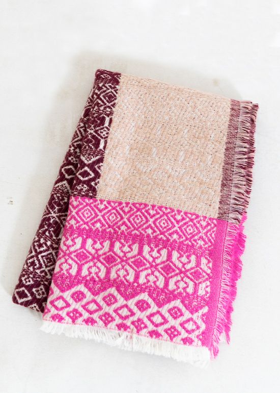 ウール100%のミックスジャカードストールは、豊かなカラフルなデザインが魅力です。