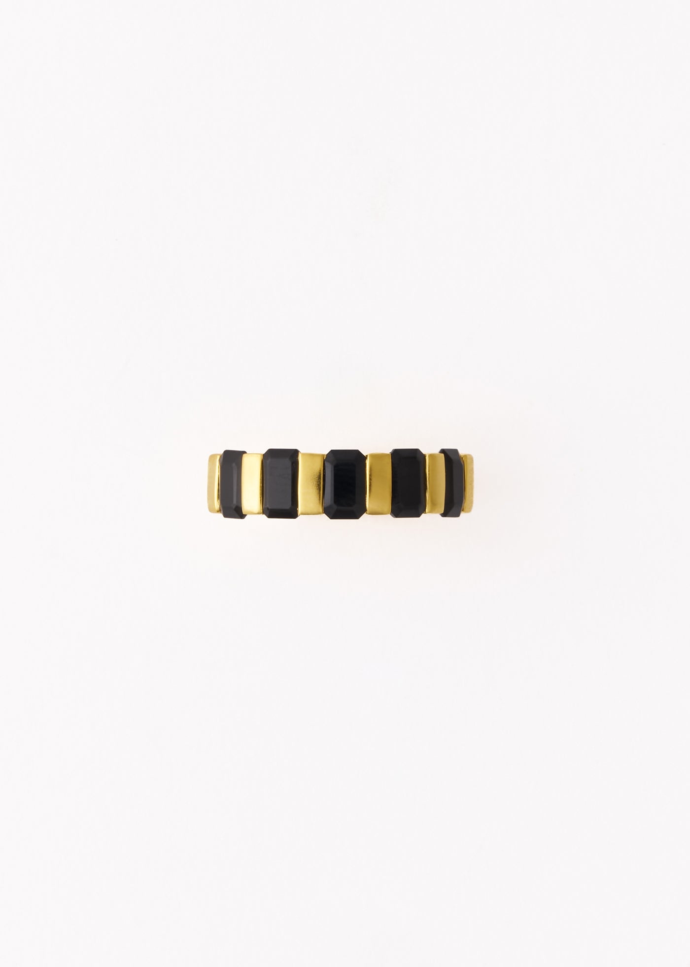 シャープなコントラストでつくるブラック×ゴールドのリング。