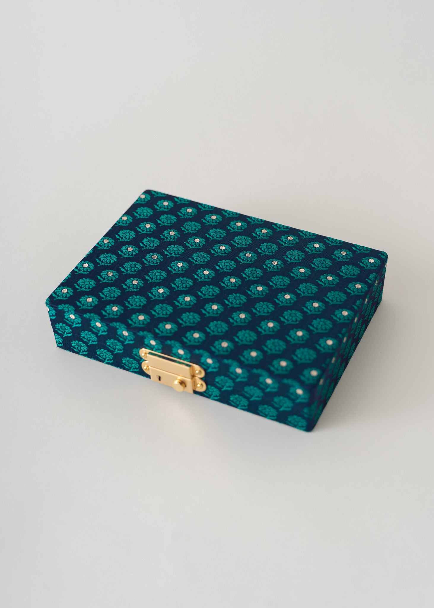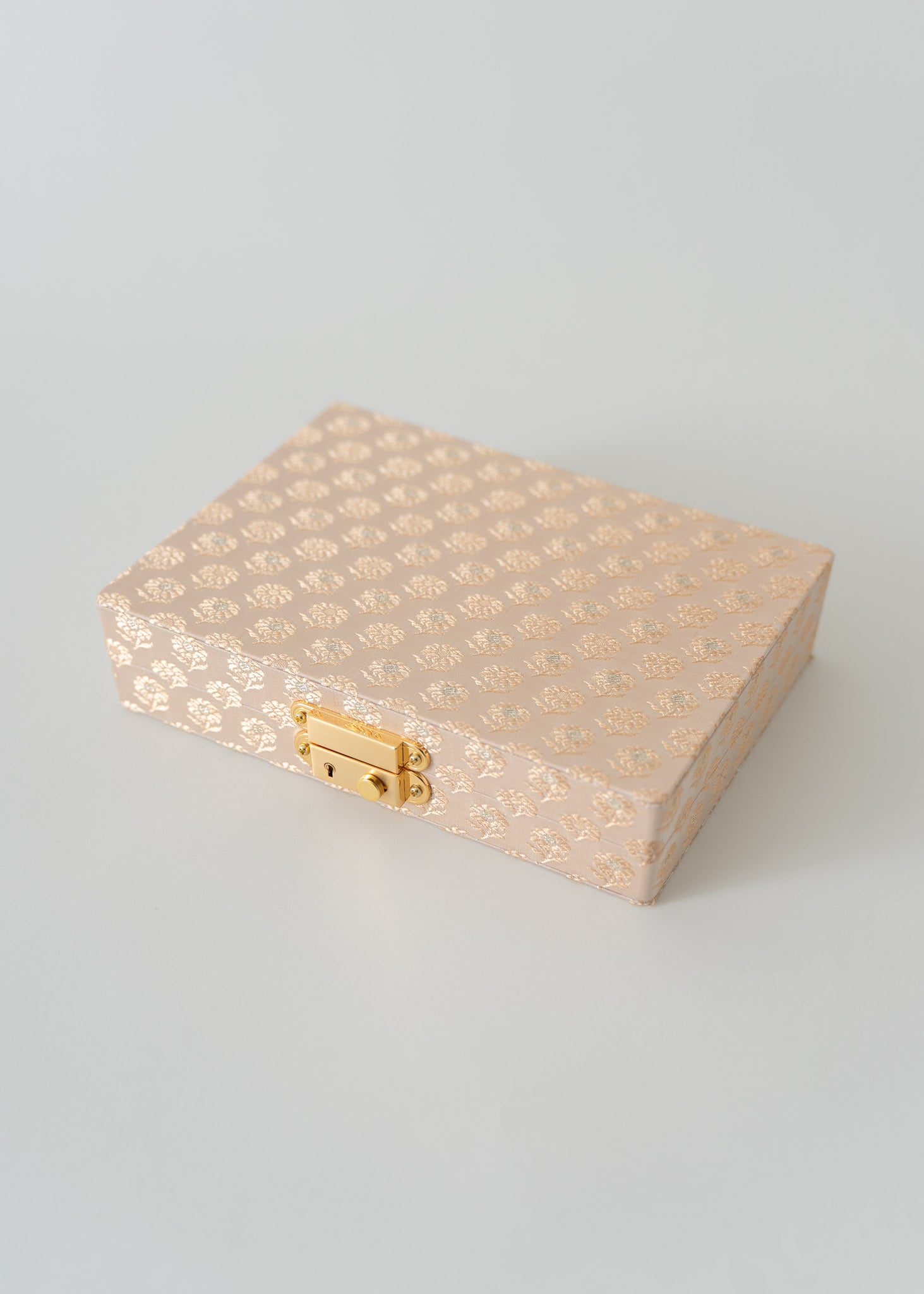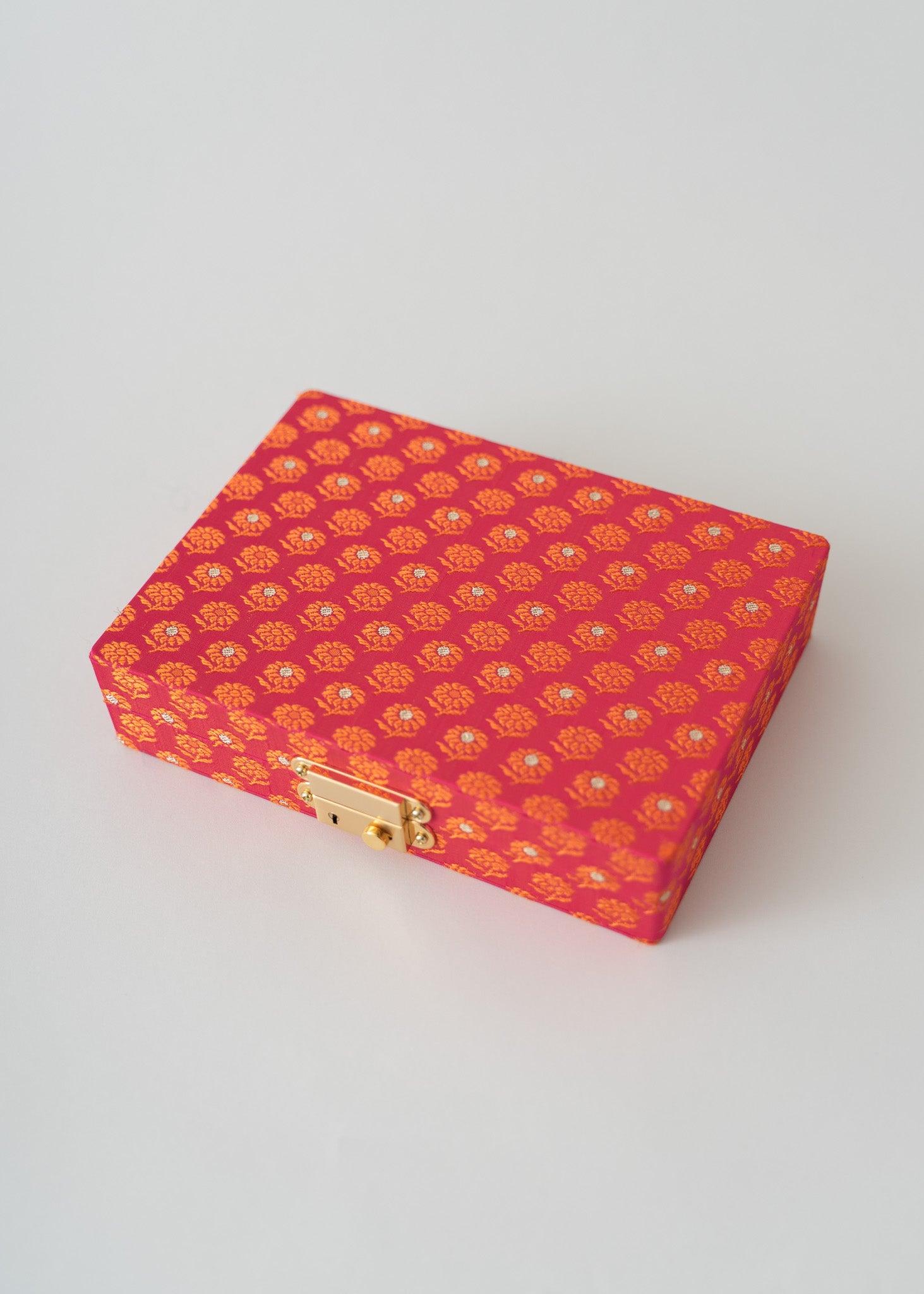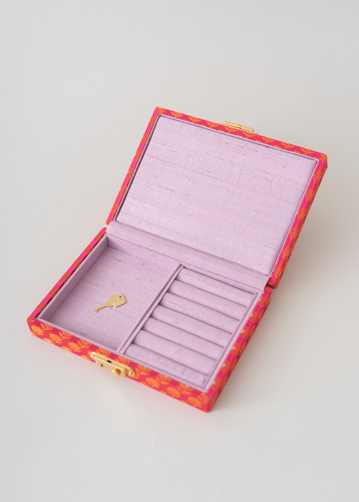 インドの伝統的な衣装であるサリーに使われるシルクを用いたジュエリーボックス。