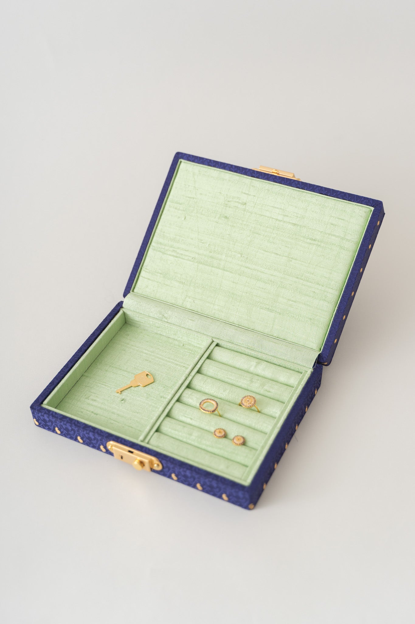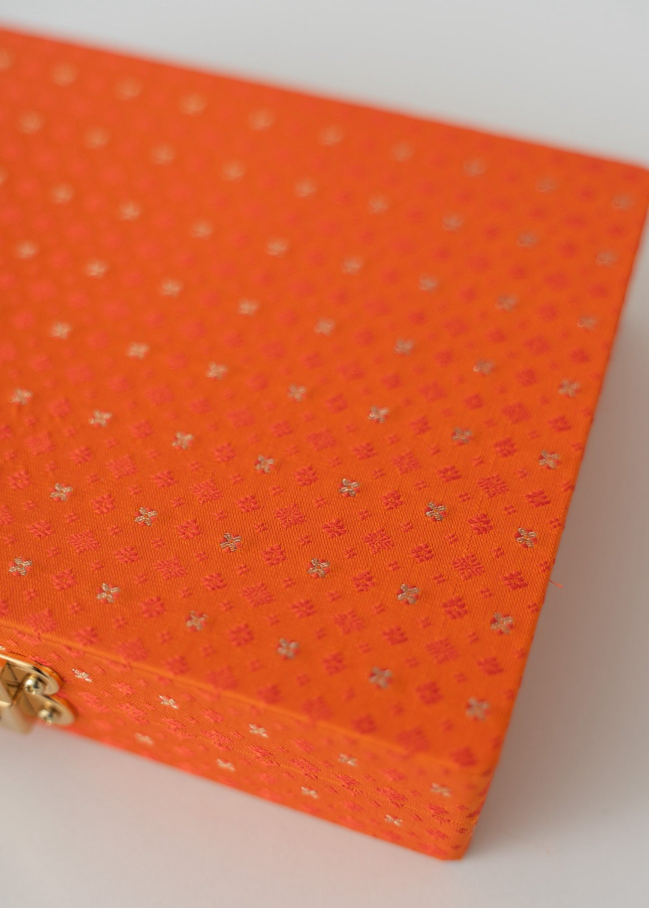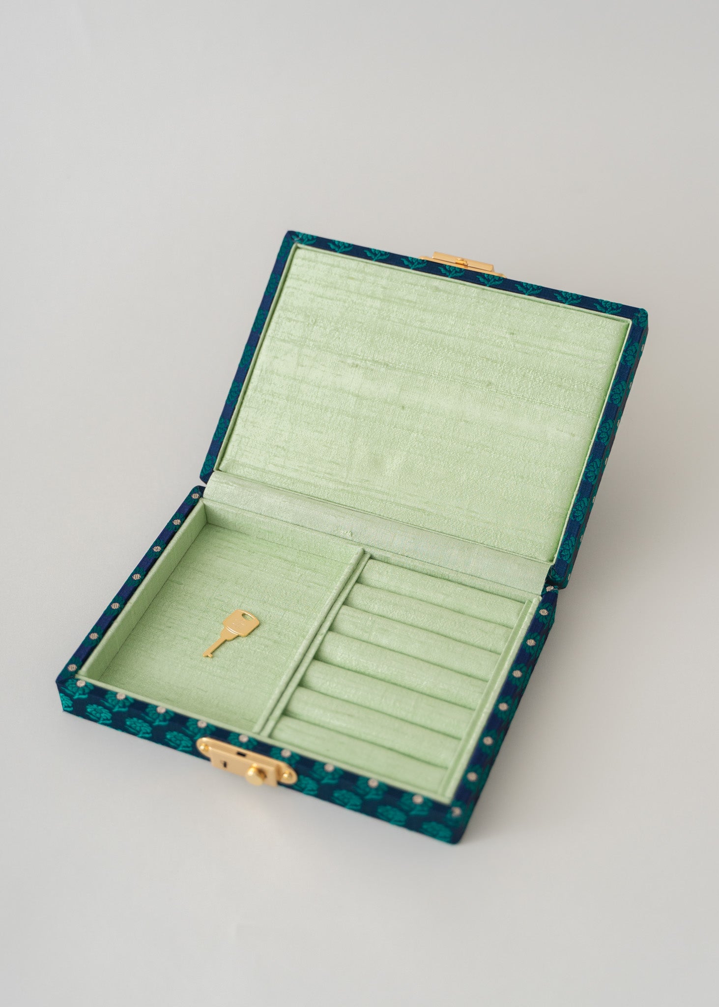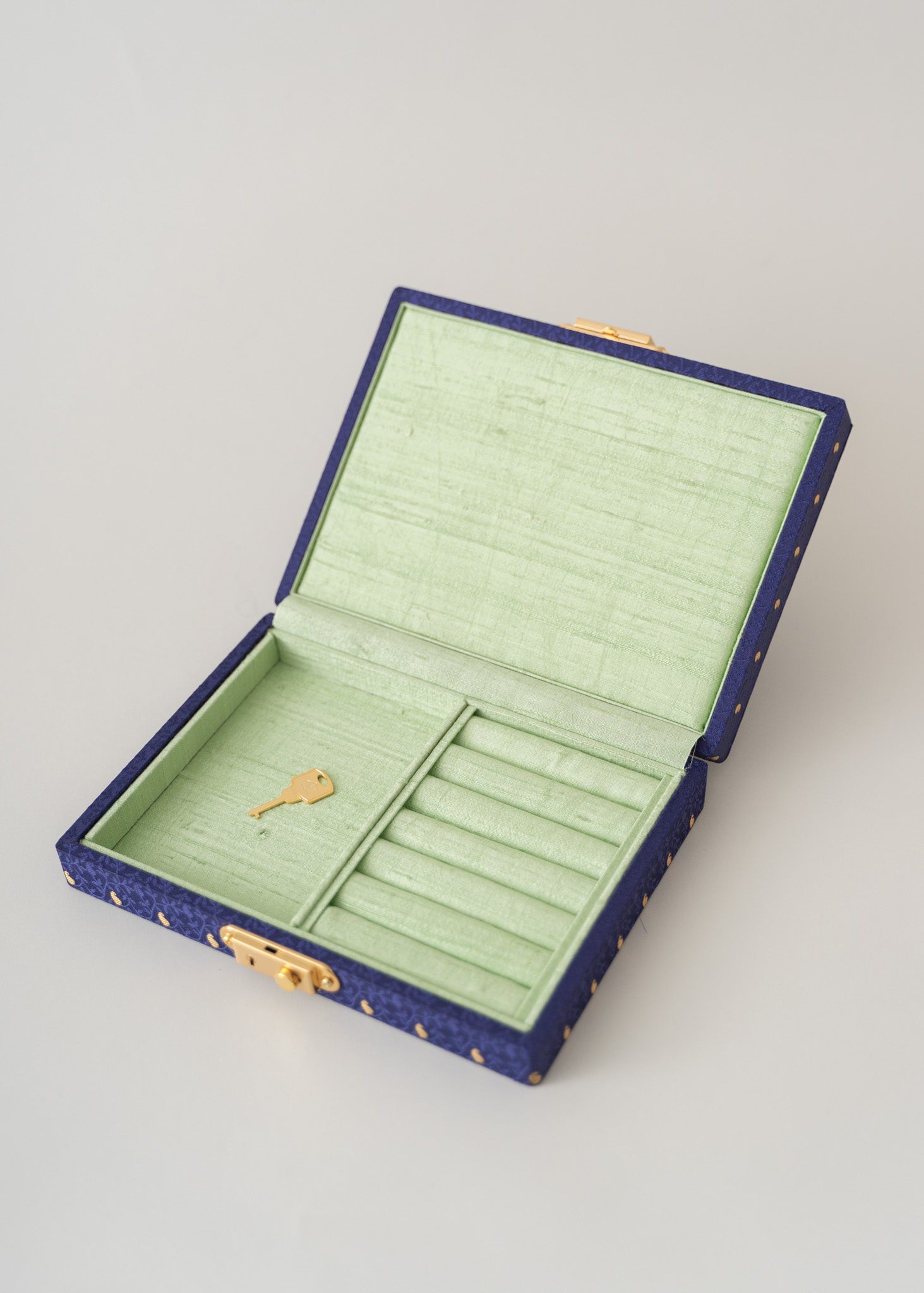 インドの伝統的な衣装であるサリーに使われるシルクを用いたジュエリーボックス。