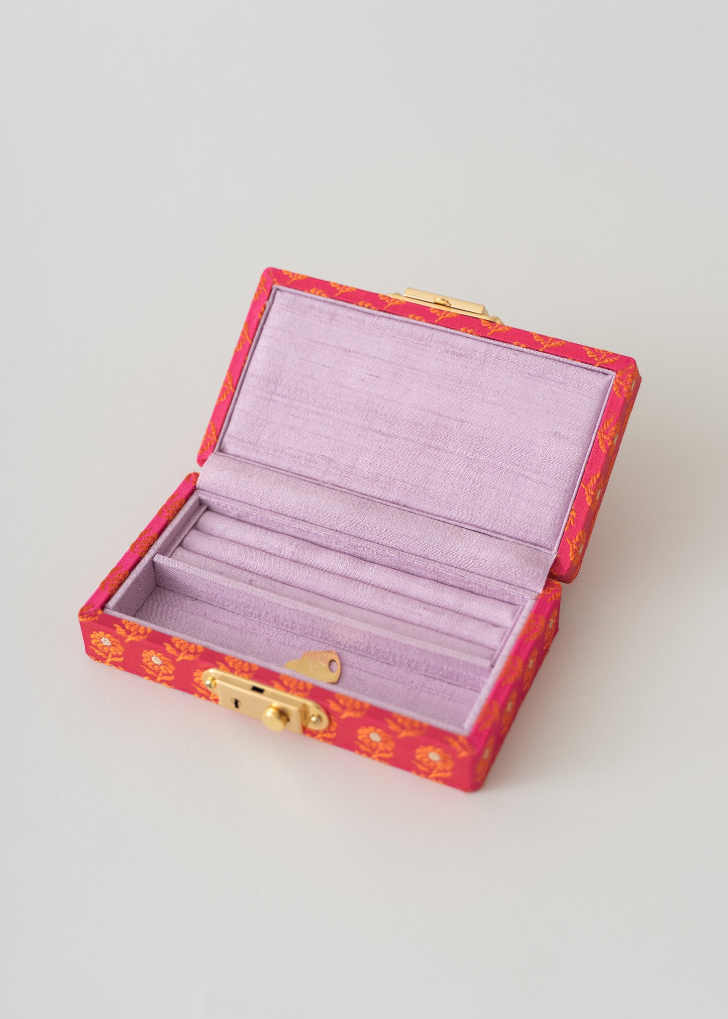 インドの伝統的な衣装であるサリーに使われるシルクを用いたジュエリーボックス。
